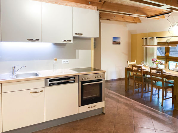 Mit 95 m² auf zwei Etagen bietet diese helle Wohnung reichlich Platz für bis zu 6 Personen. Der offene Wohn-, Ess- und Kochbereich im unteren Bereich ist ausgestattet mit einer voll eingerichteten Küche (inkl. Herd, Backofen, Kühlschrank mit Gefrierfach, Geschirrspüler, Mikrowelle, Kaffeemaschine, Wasserkocher, Toaster, Mixer u.v.m.) sowie einem modernen Bad.